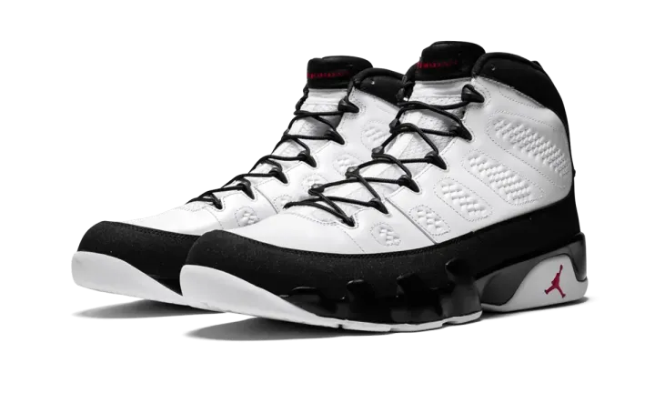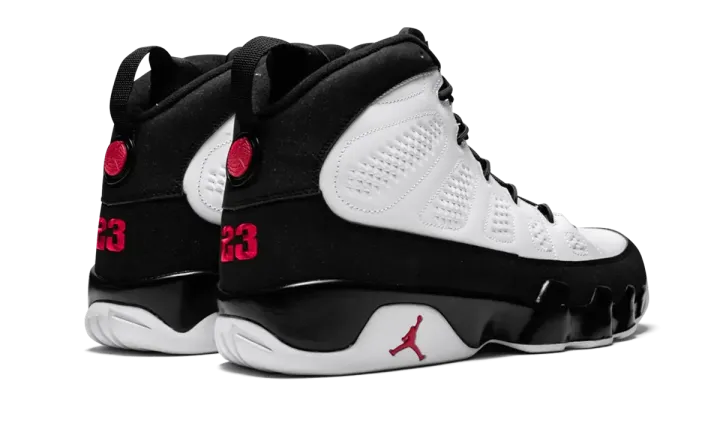 The original and most famous colorway of the Air Jordan 9 features a white and black upper with red accents. This listing is for the 2010 release.