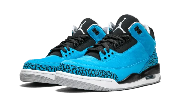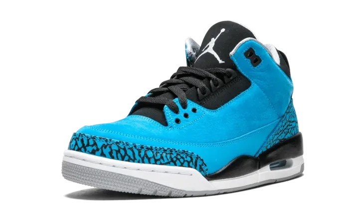Released in 2014, the Air Jordan 3 Retro "Powder Blue" calls back to Michael Jordan's days at North Carolina with its baby blue colorway, a first for the Air Jordan 3. The construction features a soft brushed leather upper with black accents and the signature elephant print.