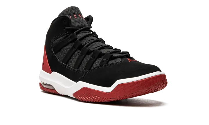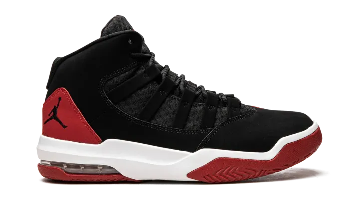 The Jordan Max Aura looks familiar, doesn't it? Almost exactly like a combination of the Air Jordan 10 and Air Jordan 11. This Jordan Brand style has the same premium materials and build and is a worthy alternative to the originals. The upper consists of layers of tumbled and synthetic leather, while the inner heel area is composed of neoprene. This mid-top basketball shoe has an Air Max unit at the heel, as well as herringbone on the outsole. This particular style sports a staple color scheme in the Jordan lineup: black, red, and white.