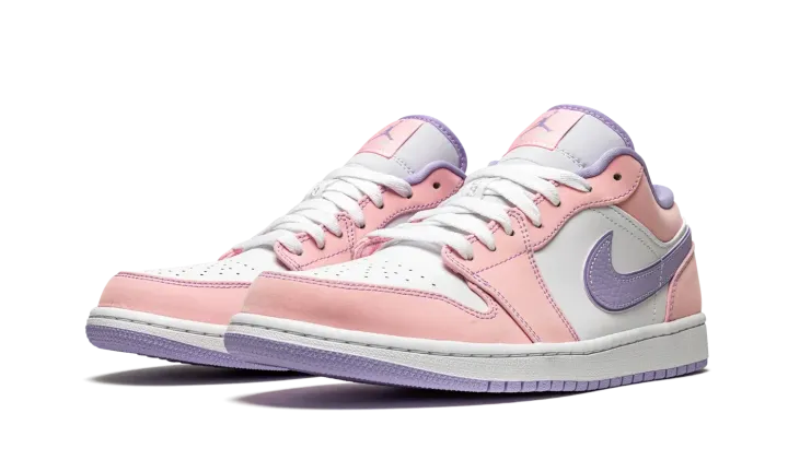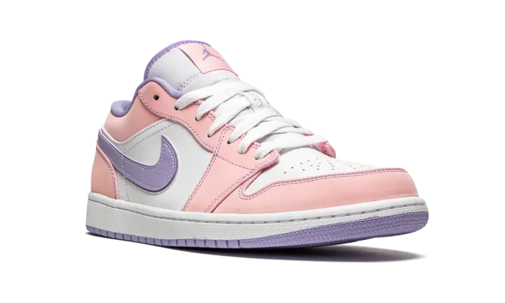 The Air Jordan 1 Low SE "Arctic Punch" is a Spring 2021 colorway of Michael Jordan's first signature shoe in its low-top silhouette. As fresh as any Easter inspired shoe on the market, the "Arctic Punch" is a vibrant design teeming with airy spring vibes as evidenced by its pink leather panels and Purple Pulse tumbled leather Swooshes on each side. A pink nylon tongue tag with purple Jumpman detailing and a purple liner further the model's unofficial Easter theme. An embroidered "Wings" design on the back of the shoe is consistent with the styling of many Air Jordan 1 Lows.