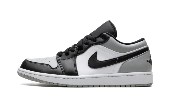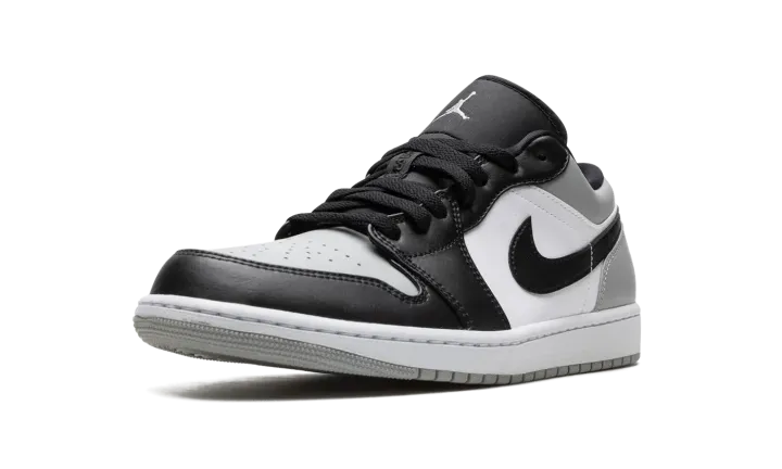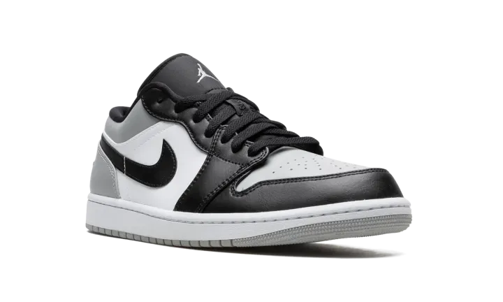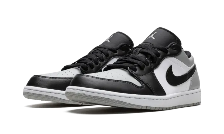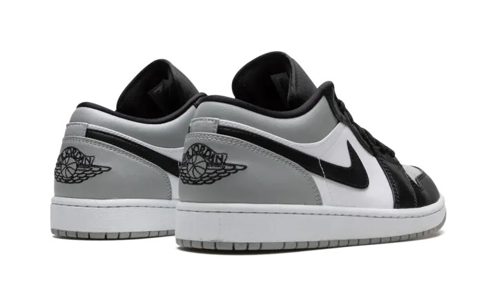 The Air Jordan 1 Low "Shadow Toe" is a modern low-top Jordan 1 that nods to an original 1985 colorway. Designed in a "Light Smoke Grey," white and black color scheme, this colorway's nickname references the original "Shadow" Air Jordan 1 High from 1985 in black and grey. This low-top features black and grey on the toe box, hence the name "Shadow Toe," with more of the two hues throughout. Unlike the original "Shadow," this edition adds panels of white leather, as well. The heel of the sneaker is complemented with an embroidered Wings logo in black.