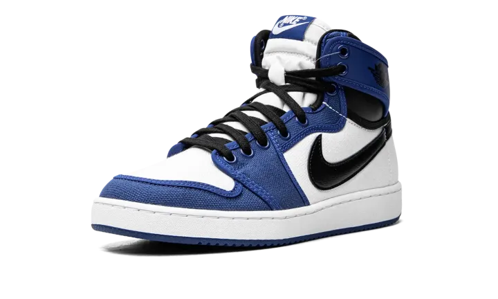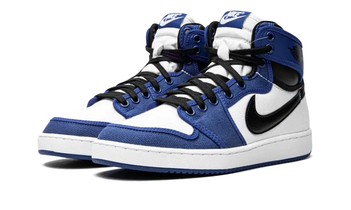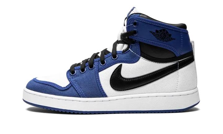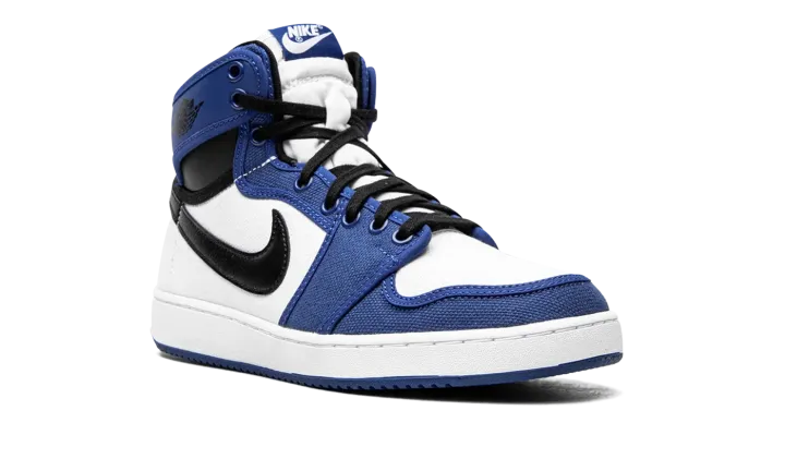 The Air Jordan 1 KO "Storm Blue" is a September 2021 colorway of the alternate version of Michael Jordan's first signature shoe. The original Air Jordan 1 KO released somewhat mysteriously back in 1985 and 1986, and featured a canvas upper instead of leather like the original Air Jordan 1. Additionally, the Jordan 1 KO rides on the same rubber sole as the Nike Vandal, another retro basketball shoe from the '80s. As for the "Storm Blue," the upper is constructed from durable white canvas with Storm Blue canvas overlays. A black leather Swoosh dots either side and a special "AJKO" Wings logo graces the collar. A "Nike" with a Swoosh logo can be found on the tongue tag. Storm Blue-colored metal eyelets complete the look. Release date: September 29, 2021