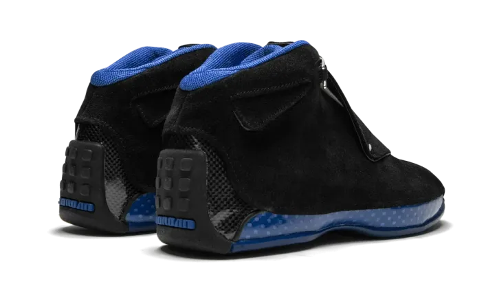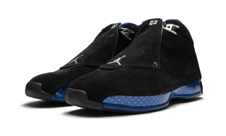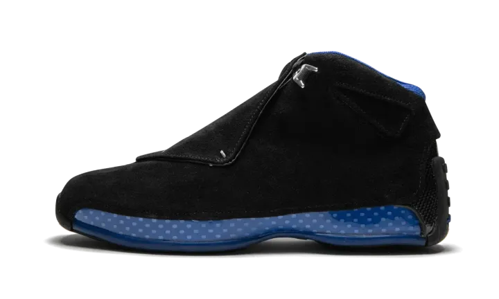 After 15 years, the Air Jordan 18 "Black/Sport Royal" returned for the first time in 2018. Released on October 11, the original black suede colorway with royal blue accents helped kick off Jordan Brand's Holiday 2018 lineup of retro releases. The design by Tate Keurbis was inspired by Italian race cars and is arguably one of the most underrated Air Jordans ever. The Air Jordan 18 is known for being the last model Michael Jordan wore in the NBA, during his final season with the Washington Wizards. This 2018 retro replicates the original release of the colorway in 2003 perfectly, with a premium black suede upper and a luxurious appearance. Don't miss out on the Air Jordan 18 "Black/Sport Royal," one of the most essential models from late in Jordan's legendary career.