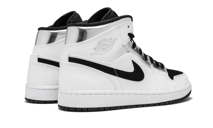 The Air Jordan 1 Mid "Alternate Think 16" was given this nickname due to its similar appearance to the metallic silver "Think 16" colorway made for NBA star Kawhi Leonard. This mid-top Jordan 1 features less metallic silver however, opting for a larger dose of solid white leather and black synthetic nubuck across the upper. Silver is found on the eyestay panel, around the ankle, and on the classic "wings" logo. The Air Jordan 1 Mid "Alternate Think 16" released in late 2018.