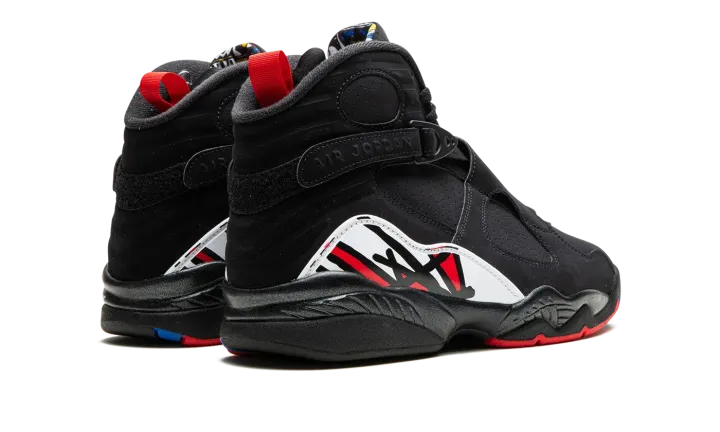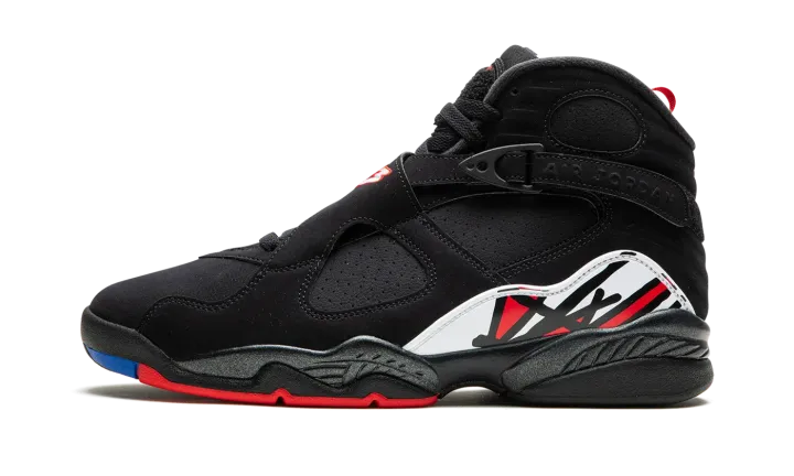 The Air Jordan 8 "Playoffs 2023" is the modern re-release of an original colorway of Michael Jordan's eighth signature shoe that was worn by Jordan with the Chicago Bulls during the 1993 NBA Playoffs. The Jordan 8 "Playoffs" is a classic and beloved colorway of the vintage basketball shoe and, on this 2023 iteration of the design, it features all the same details that made the original version a legendary sneaker back in the day. The shoe is complete with a black synthetic nubuck upper with supportive cross straps. Red pull tabs on the heel are a nod to the original color of the design on the '93 release. Jumpman branding appears on the model's signature chenille Jumpman patch and a brushstroke-like graphic is found on the mudguard. Release date: September 30, 2023