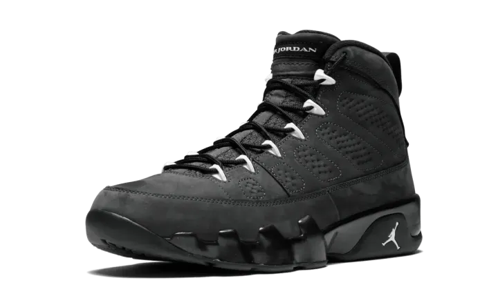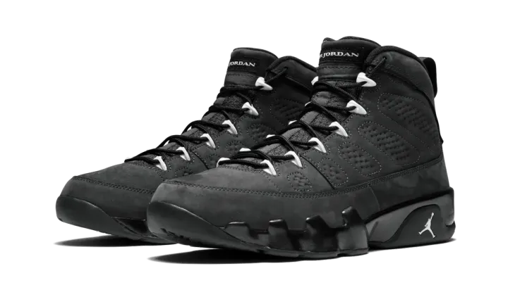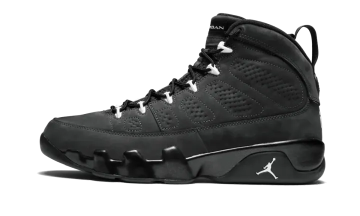 Similar to a sought-after Oregon Ducks PE of the Air Jordan 9, this "Anthracite" colorway form 2015 features an all-black nubuck upper with white accents. The result is a sleek and simple look for the classic Air Jordan silhouette.