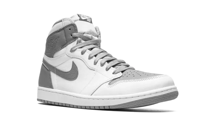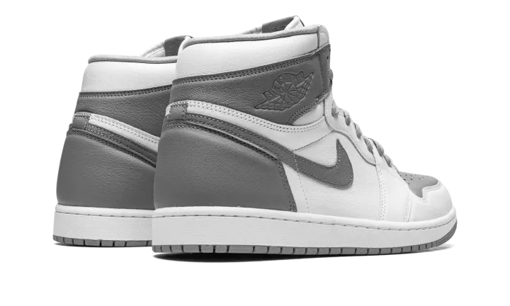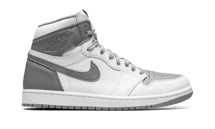 The Air Jordan 1 High OG "Stealth" is a versatile, two-tone, white and grey colorway of Michael Jordan's first signature shoe. The "Stealth" is one of the most wearable versions of the popular Jordan 1 High OG model around, and it's easy to see why based on the shoe's classic appearance. Stealth, or grey, leather can be found on the perforated toe, collar, heel, and Swoosh. Contrasting white leather appears on the toe, forefoot, mid-panel, and collar. A tonal "Wings" logo is located on the collar, and white "Nike Air" and Swoosh detailing can be found on the grey nylon tongue tag on the white nylon tongue. Underfoot, a white midsole and grey outsole finish off the look. Release date: August 27, 2022