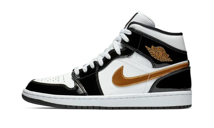 Air Jordan 1 Mid SE "Black Gold Patent Leather" 852542 007