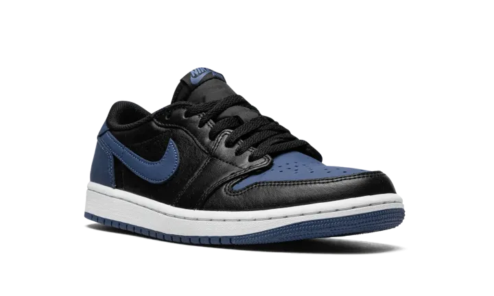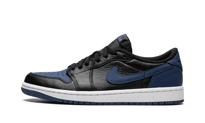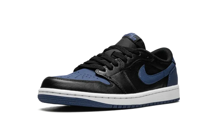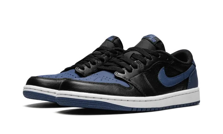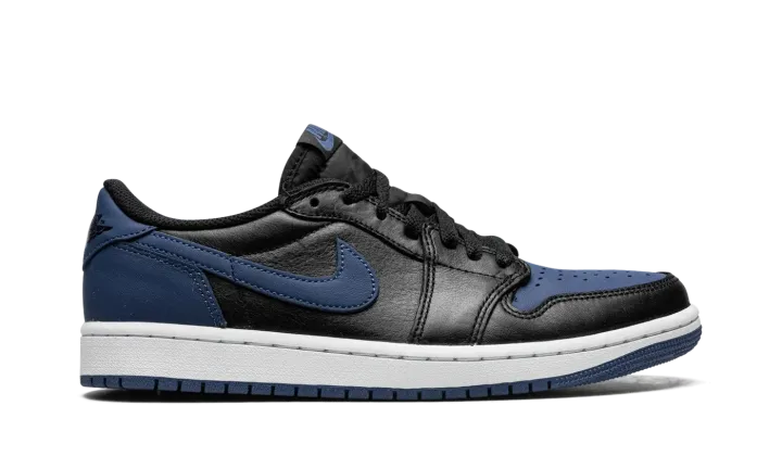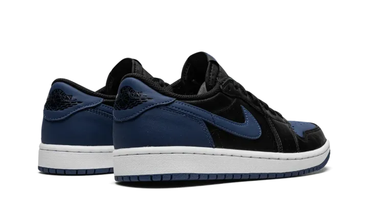 The Air Jordan 1 Low OG "Mystic Navy'' is a classic retro sneaker with a simple two-tone arrangement. Clearly inspired by the Jordan 1's original and celebrated "Royal" colorway, this shoe features a dark blue and black combination across its leather upper. Toe boxes, side Swooshes and panels at the heel are featured in the titular "Mystic Navy" tone. Nike Air branding on the the top of the tongue also favors the rich navy hue that contrasts the bulk of the black makeup found throughout the shoe's upper. Underfoot, the sole unit has a white midsole and blue outsole. Release date: June 30, 2022