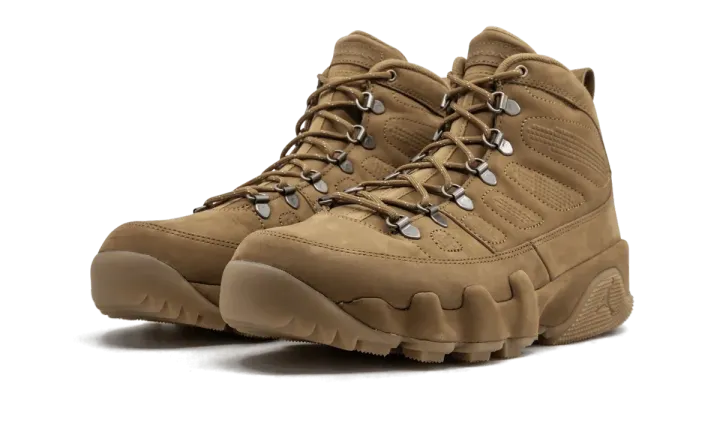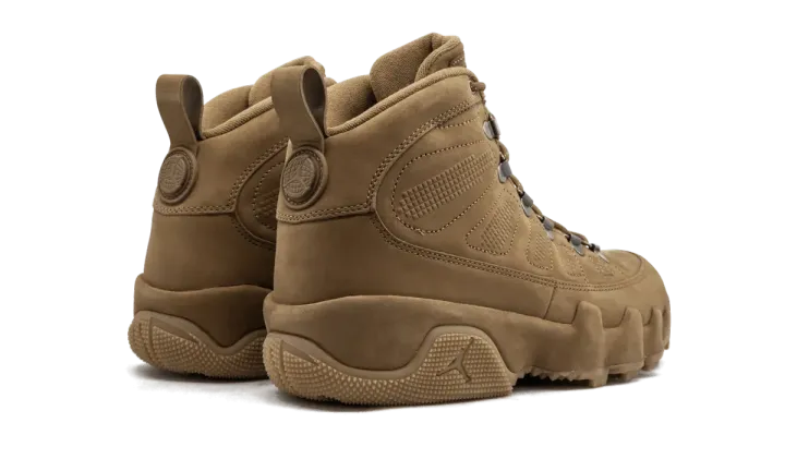The Air Jordan 9 Boot "Wheat" is a stylish winterized edition of the classic silhouette. Designed to protect your feet in harsh weather with the iconic Air Jordan style, Michael Jordan's ninth signature shoe gets beefed up for fall and winter wear. The rugged design features a nubuck upper with a water-resistant coating and gusseted tongue to keep you dry, while the rubber outsole adds extra traction to keep you from slipping. The Air Jordan 9 Boot "Wheat" features the classic tan nubuck build inspired by work boots, complete with metal D-ring lace eyelets to further accentuate the "sneakerboot" design.