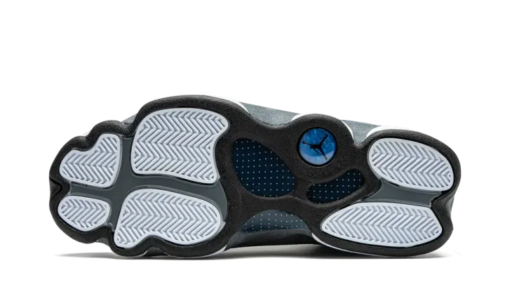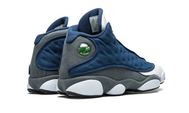 The Air Jordan 13 "Flint 2020" is the 2020 release of the beloved original colorway. Appearing alongside other original colorways in the late-90s, the "Flint" makeup is one of the most coveted looks of the Jordan 13 despite the fact that it does not employ the team uniform colors of the Chicago Bulls. Nicknamed after the "Flint Grey" nubuck material that appears on the mudguard, mid-panel, and heel, the shoe features true-to-original styling elements including French Blue ballistic mesh with reflective detailing on the upper and a holographic emblem along the collar. Embroidered Jumpman branding appears on the white leather tongue. Black nylon Jumpman detailing can be found on the throat. White midsole walls contrast the colorful upper. Release date: Spring 2020.