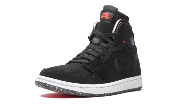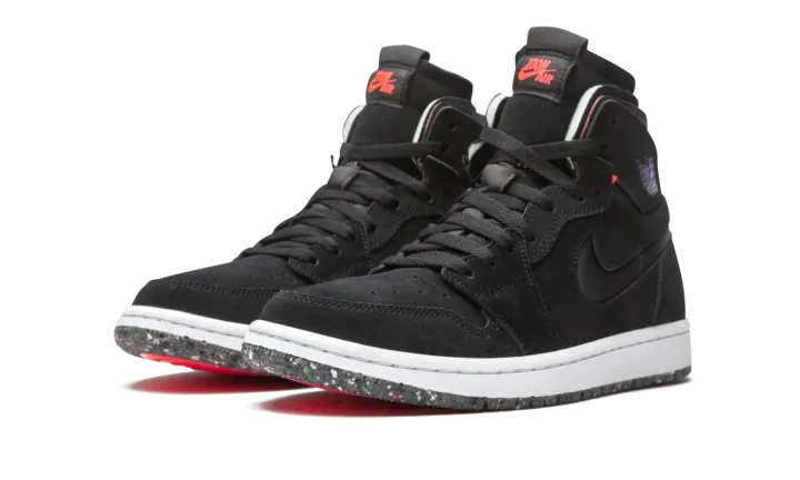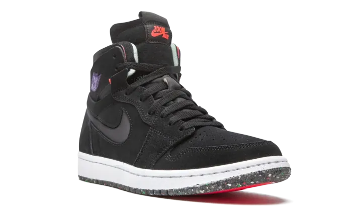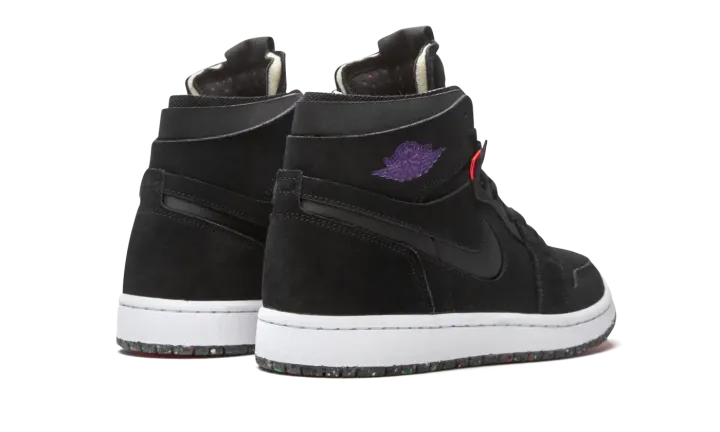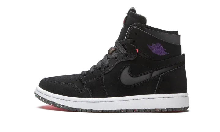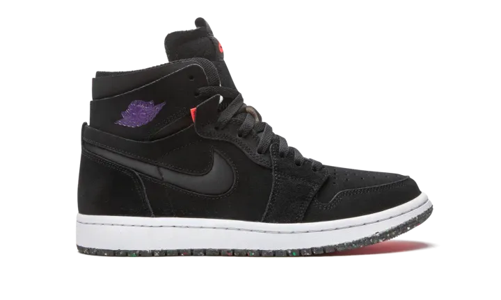 The Air Jordan 1 High Zoom CMFT "Court Purple" is a modern interpretation of Michael Jordan's first signature shoe with even more padding around the collar and Zoom Air cushioning in the sole. Appearing in "Court Purple," the Jordan 1 Zoom Comfort is an modified construction for the retro basketball shoe that expands upon the model's standard performance components. Moreover, the silhouette combines non-traditional Air Jordan 1 materials and colors for a refreshing new vibe. The entire upper is constructed from black suede, including the perforated toe, mid-panel, collar, and heel. Jordan Brand adds a black neoprene Swoosh to both sides and a Court Purple "Wings" logo to the collar. The Air Jordan 1 Zoom Comfort features a higher tongue than the standard Jordan 1 and replaces the original "Nike Air" branding with "Zoom Air" insignia on the tongue tag. The Zoom Comfort also displays exposed foam padding on the collar à la the Off-White x Air Jordan 1 from "The 10" collection. Jordan Brand adds Zoom Air cushioning into the midsole for more comfort, replacing the standard Air unit found in the original Air Jordan 1 High OG model.