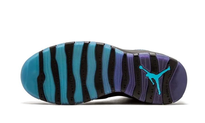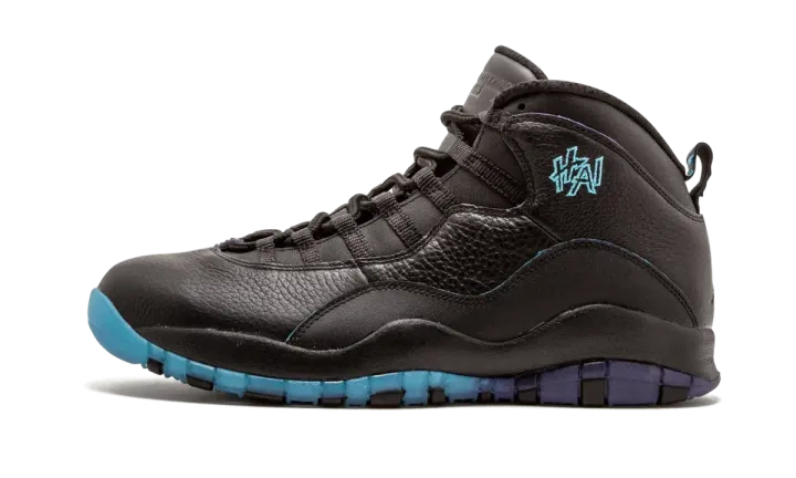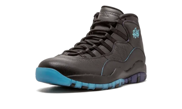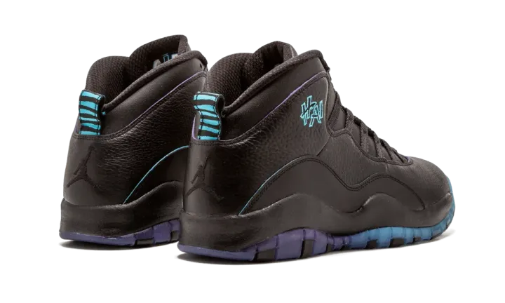 Black/gamma blue/fierce purple leather Air Jordan Retro 10 "Shanghai" sneakers from jordan featuring round toe, flat rubber sole, front lace-up fastening, branded insole and ankle length. These styles are supplied by a premium sneaker marketplace. Stocking only the most sought-after footwear, they source and curate some of the most hard to find sneakers from around the world.