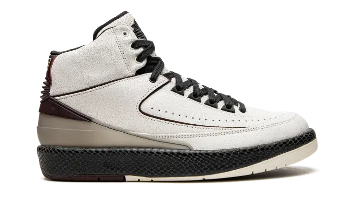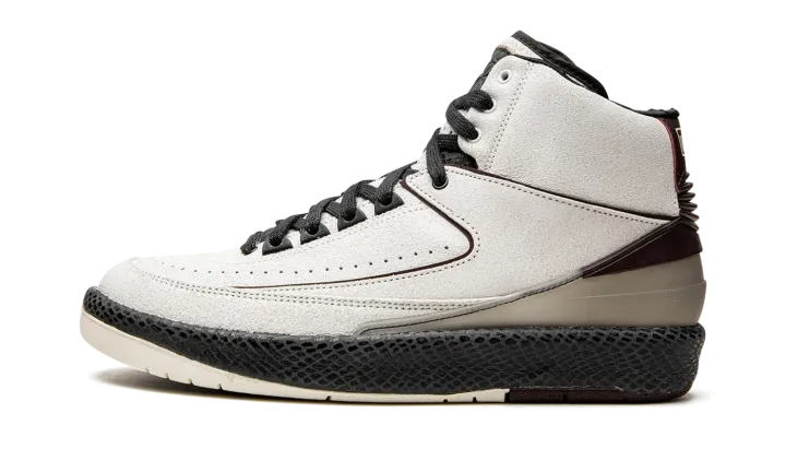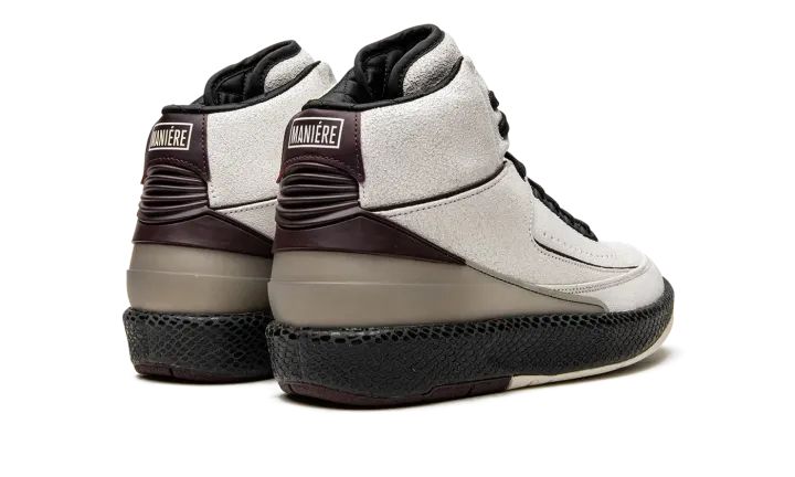 The A Ma Maniére x Air Jordan 2 is a collaboration between the upscale clothing and sneaker boutique and Jordan Brand on Michael Jordan's second signature shoe. The Jordan 2 enjoyed newfound appreciation when Off-White collaborated on the retro basketball sneaker in 2021, and again when Union co-created several colorways in early 2022. Excitement for the old school shoe boiled over when A Ma Maniére released its "Airness" version in May 2022. Details include a premium textured Sail leather base with burgundy accents on the heel. A black faux snakeskin textured midsole adds to the shoe's opulent look. "Maniére" branding replaces the original "Air" detailing found on the heel. A burgundy "Wings" logo is found on the tongue. Release date: May 13, 2022