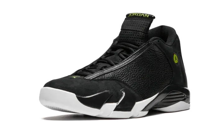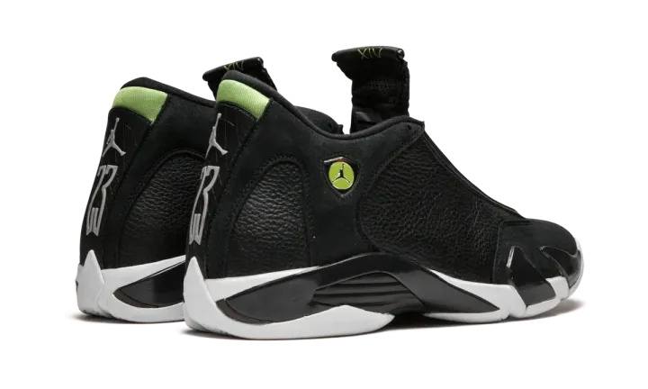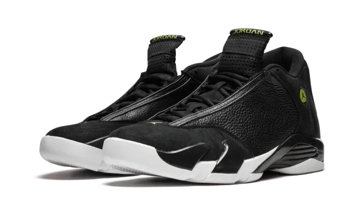 The fan-favorite Air Jordan 14 "Indiglo" finally made its first-ever comeback in 2016. Replicating the original 1999 release almost perfectly, the shoe features a full-grain leather and nubuck upper in black with eye-catching Indiglo green accents. No appreciator of the Air Jordan 14 should be without a pair.