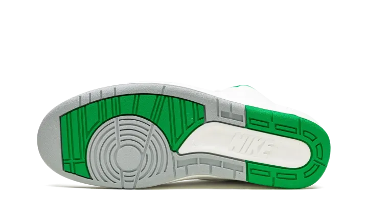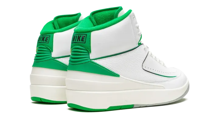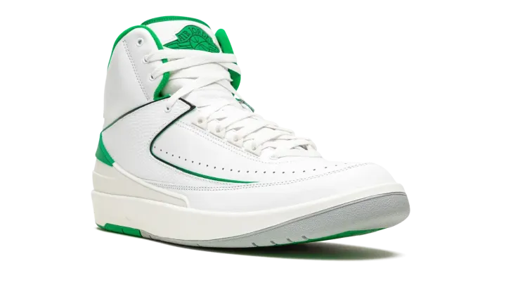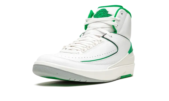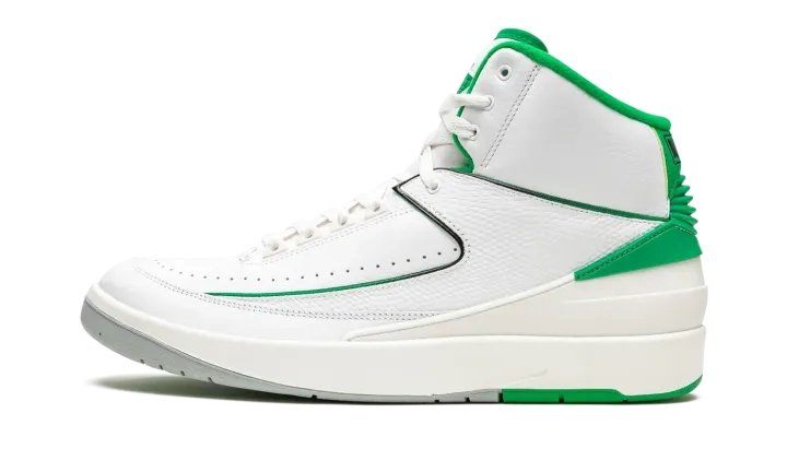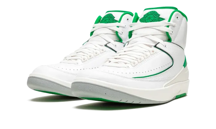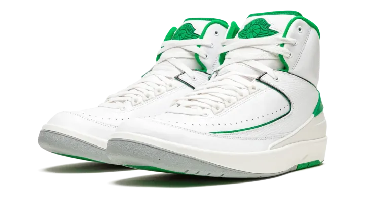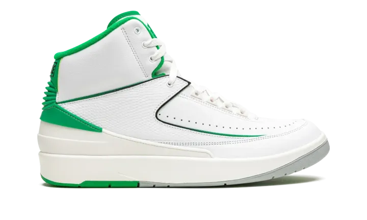The Air Jordan 2 "Lucky Green" is a classic look for the retro basketball shoe that is loosely inspired by the Boston Celtics. The "Lucky Green" is not officially affiliated with the Celtics, but is nonetheless a nod to the storied basketball team as it features its white and green team uniform colors on its design. The Jordan 2 "Lucky Green" features a white leather base with tonal textured leather overlays. Lucky Green accenting can be found on the heel counter, interior, and on the "Wings" branding on the tongue. A cream midsole gives the shoe a vintage look. Release date: February 3, 2023