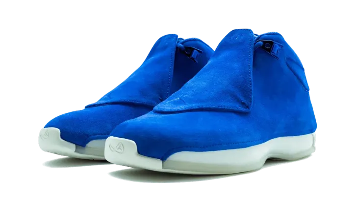 Supplied by a premier sneaker marketplace dealing with unworn, already sold out, in demand rarities. Each product is rigorously inspected by experienced experts guaranteeing authenticity.The Air Jordan 18 "Racer Blue" helped the classic Air Jordan model make a big return in the fall of 2018 as part of the "Suede Pack." The set included three vibrant suede colorways of the silhouette that's regarded as one of the best Air Jordan designs from late in Michael Jordan's career. Along with yellow and orange options, the Air Jordan 18 "Racer Blue" from the "Suede Pack" features rich blue suede covering the entire upper with a translucent midsole and white rubber outsole. The premium treatment was a must-have for the underrated Air Jordan 18's biggest appreciators, and also helped turn a whole new generation of collectors into fans of the last Air Jordan worn on an NBA court by the greatest player of all time.