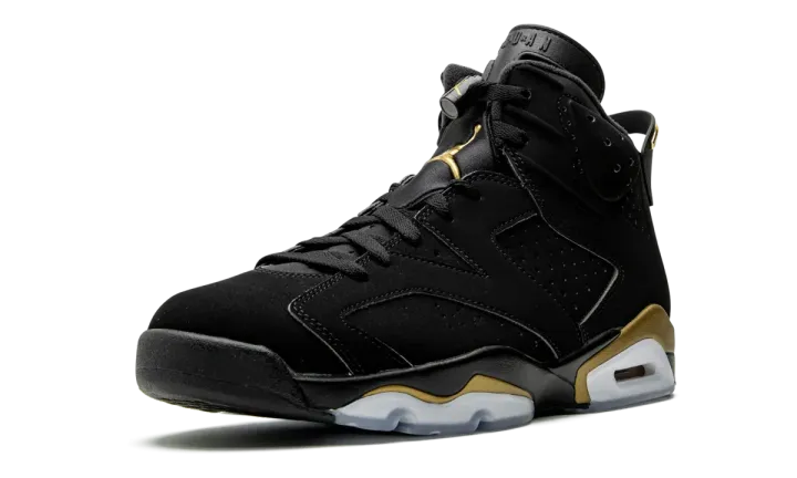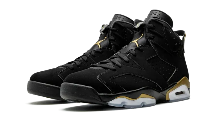 The Air Jordan 6 "DMP 2020" is a Winter 2020 re-release of the classic "Defining Moments Pack" that first appeared in 2006. One of the most celebrated and coveted two-shoe sets ever from Jordan Brand, the Defining Moments Pack celebrated Michael Jordan's first NBA Championship and contains an Air Jordan 6 and Air Jordan 11, both of which sport a premium redesign. The Air Jordan 6 features a stealthy black nubuck upper with a gold-accented Jumpman on the tongue and gold trim on the midsole that provides a touch of opulent styling. For 2020, Jordan Brand opted to bring back the Jordan 6 from the original pack in all its glory. Release date: April 2020.