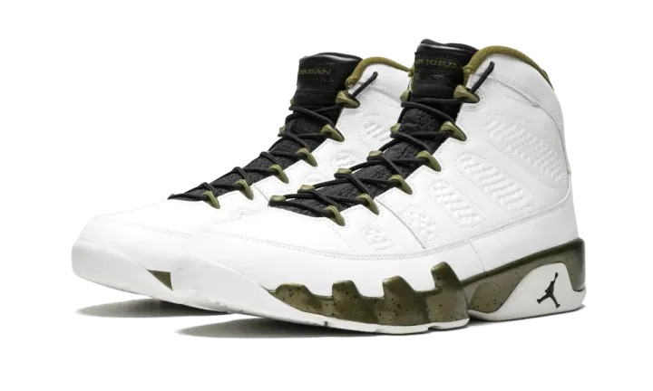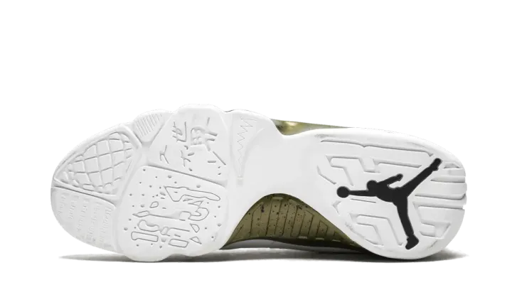 This 2015 release of the Air Jordan 9 is inspired by the bronze Michael Jordan statue outside of the Chicago Bulls home arena, which depicts His Airness in the Jumpman pose wearing the Air Jordan 9. The tribute to Michael built after his first retirement in 1994 is translated into this colorway with a speckled bronze-colored midsole.