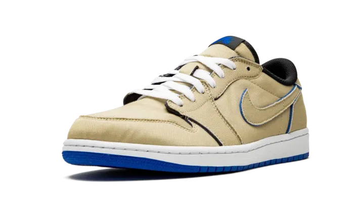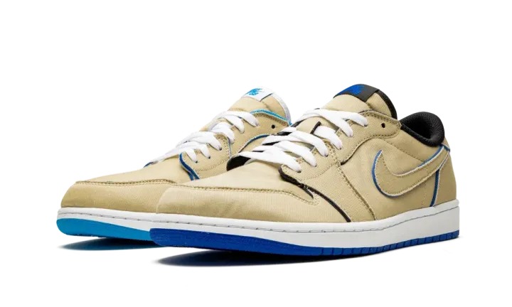 The Lance Mountain x Air Jordan 1 Low SB "Desert Ore" is the iconic skateboarder's version of one of Jordan Brand's most recognizable silhouettes. This special makeup of the Jordan 1 SB is Mountain's second collaboration on the shoe he famously wore throughout the mid-80s. Like many of Mountain's sneaker collaborations with Nike and Jordan Brand, the California native leans heavily on DIY influences as the upper of the beige shoe features a tear-away design that reveals a new colorway underneath the original base. Mountain and Jordan Brand add "UNC" accenting to the right shoe and "Royal" hints to the left shoe. The mismatched colors are inspired by a mismatched pair of the same OG colorways of the Jordan 1 High Mountain wore in the '80s. A traditional white rubber midsole and royal blue outsole add the finishing touches to the fusion Jordan 1 SB. Release date: December 6, 2019.