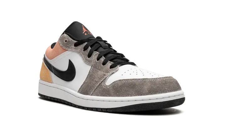 The Air Jordan 1 Low SE "Flight Club" is a colorway of the retro basketball shoe with multi-color overlay panels. Yet another unique look for the always-popular Jordan 1 Low, the "Flight Club" features a white leather base with grey suede on the toe cap, forefoot, and eyelets. Faded pink suede can be found on the collar and faded orange suede appears on the heel. A black leather Swoosh logo is located on the sides. Classic "Wings" branding is embroidered on the heel. A pink Jumpman is embroidered on the black nylon tongue. Release date: May 9, 2023
