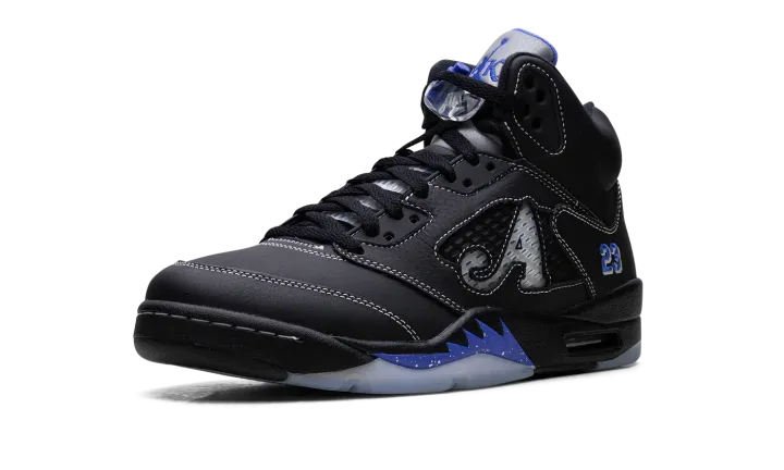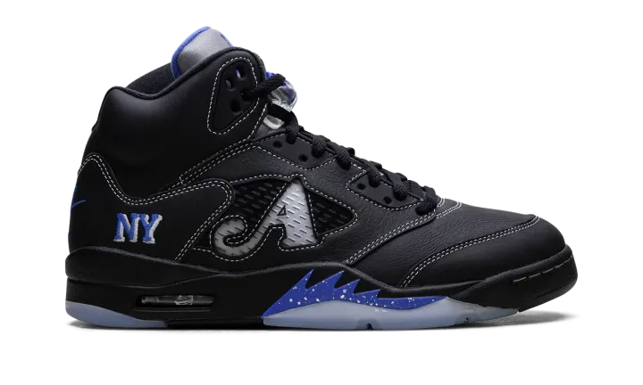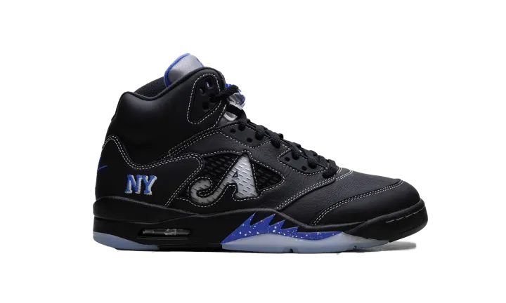 Step into a unique collaboration with the Air Jordan 5 "Awake NY Black." This remarkable sneaker, a partnership with Awake NY, features a sleek all-black design with subtle, distinctive details. Experience legendary comfort and a bold aesthetic, perfect for making a statement with an exclusive edge.