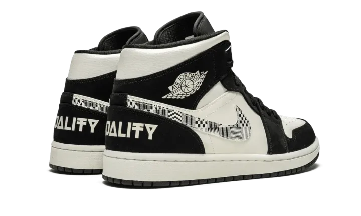 The Air Jordan 1 Mid "Black History Month 2019" is a special edition of the mid-top Air Jordan 1 celebrating African American heritage. The impressive look features a Sail leather base with black suede overlays and a graphic print on the Swoosh that is inspired by traditional African textile prints. The heel features an "EQUALITY" graphic promoting an equal and inclusive world for all athletes. The design is finished with Carmelo Anthony's logo on the tongue patch. The Air Jordan 1 Mid "Black History Month 2019" released in February 2019.
