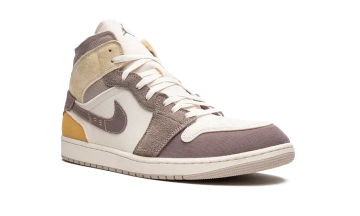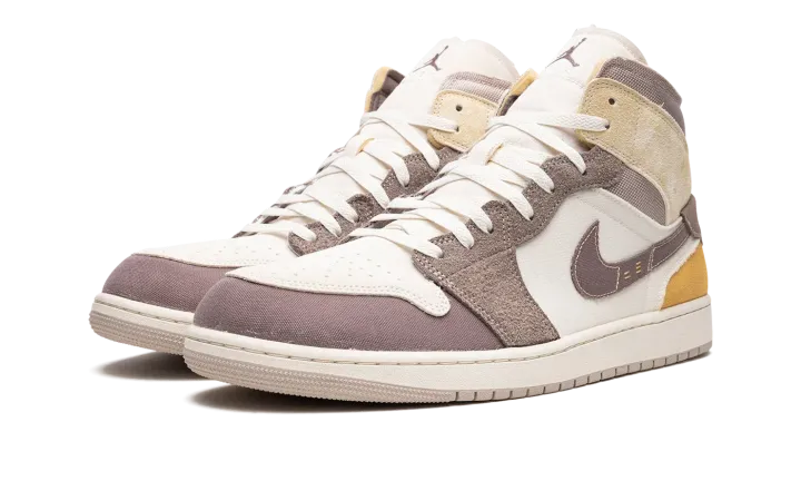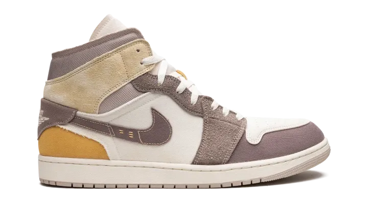 The Air Jordan 1 Mid SE Craft "Taupe Haze" is an alternate version of the popular shoe that updates its design with an "inside-out" look. The "Taupe Haze" gives the Jordan 1 Mid Craft a progressive design with mismatched panels in various textiles. Sail-colored canvas can be found on the perforated toe and mid-panel while Taupe Haze suede appears on forefoot and eyelet overlays. The grey hue also graces the toe cap and heel. A Taupe Haze Swoosh is found on the sides. An overlay panel with "Wings" branding is located on the back of the shoe, moved from its placement on the collar on the Air Jordan 1 Mid's original design.
