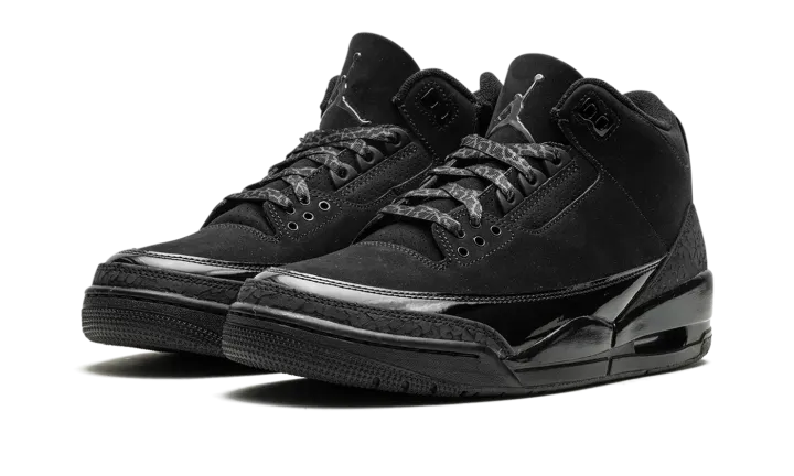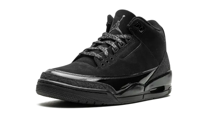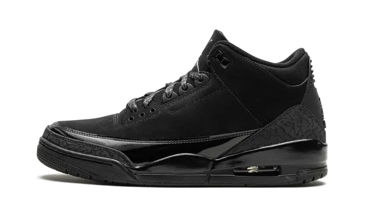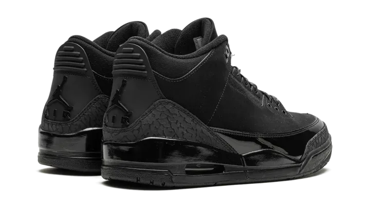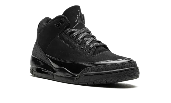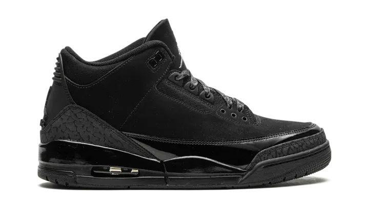 The Air Jordan 3 "Black Cat" is a stealth, all-black colorway of Michael Jordan's third signature sneaker. The shoe has all of the details that Jordan 3 fans love, including the elephant print around the heel and toe, and the exposed Air cushioning unit. The AJ3 "Black Cat" also features patent leather accents that help the shoe really stand out.