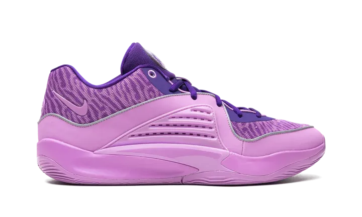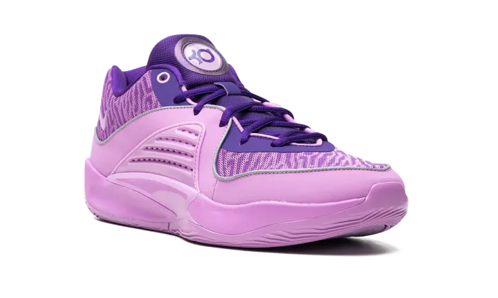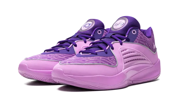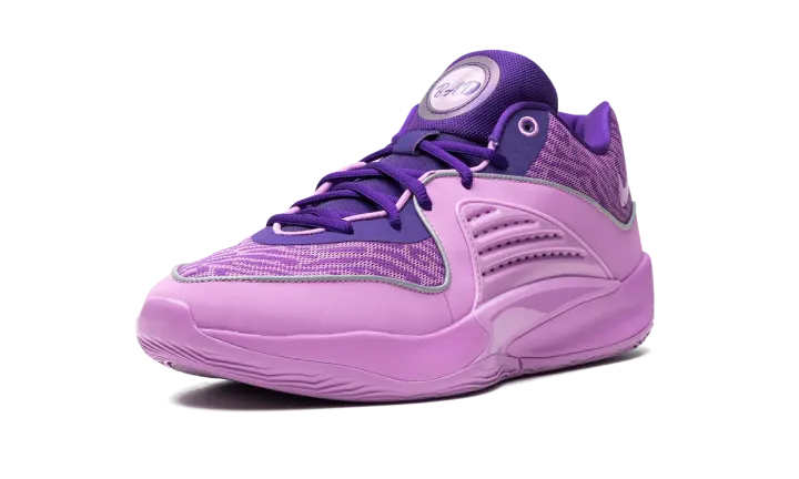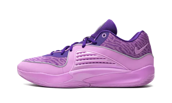 The Nike KD 16 "B.A.D" is a colorway of Kevin Durant's sixteenth signature shoe with Nike Basketball that honors his late grandmother, Barbara A. Davis. Debuted on the Nike KD 15, the "B.A.D" colorway theme returns on the KD 16 as the basketball star pays tribute to the life and legacy of his late grandmother. The upper features a Field Purple and Rush Fuchsia color scheme. The right tongue has Durant's signature branding with Nike while a "B.A.D" logo appears on the left tongue. Another "B.A.D" logo can be seen on the insole. Reflective detailing can be found throughout the shoe. Release date: December 2023