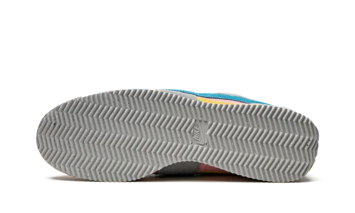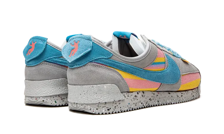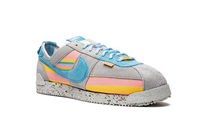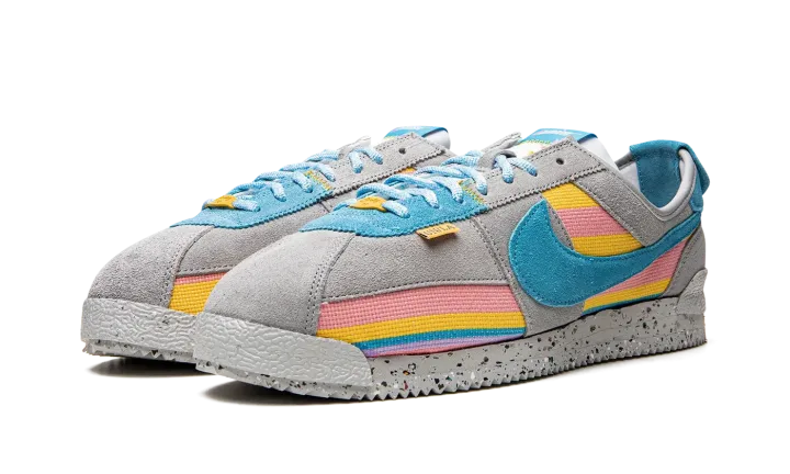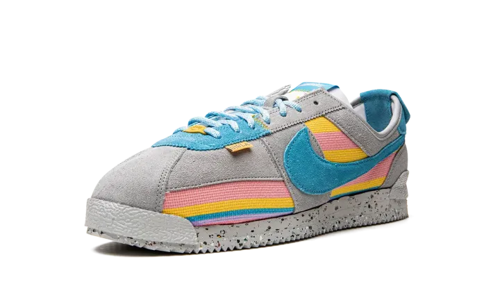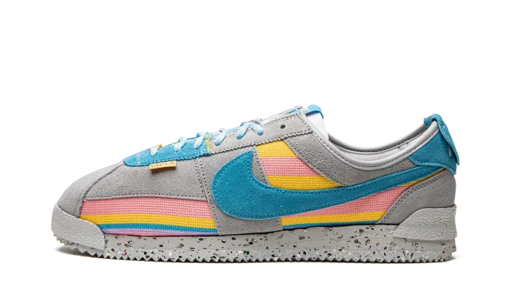 The Union x Nike Cortez "Grey/Blue" is a collaboration by the Los Angeles based clothing and sneaker retailer that celebrates the retro running shoe's legacy and close ties to the greater LA area. One of several colorways by Chris Gibbs and Union in 2022 that honors the Nike Cortez's 50th anniversary, the "Grey/Blue" updates the model with Union's signature colors and textiles for a completely new look for the classic shoe. Grey suede overlays contrast the multicolor striped knit base. A Coral-colored suede Swoosh is found on both sides. The hue also appears on the heel tab, as well as on the heel overlay with Union's "Frontman" logo. The shoe's sole is made from sustainably sourced materials as Nike's recycled Crater Foam and Grind rubber comprise the midsole and outsole, respectively. Release date: July 21, 2022