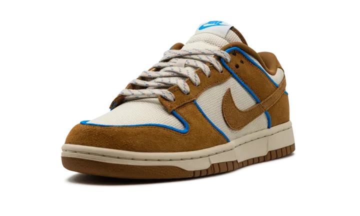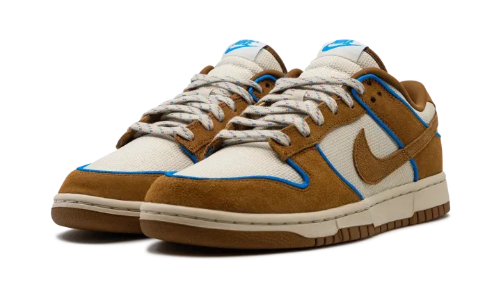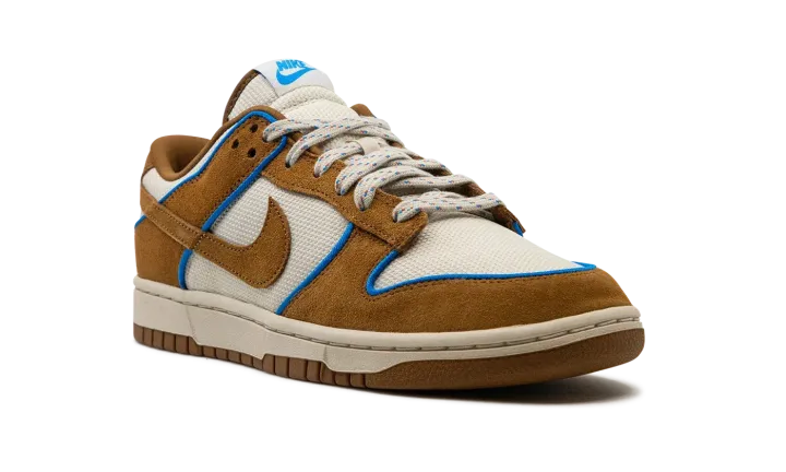The Nike Dunk Low "Light British Tan" is a colorway of the retro basketball shoe made from an interesting combination of materials. From Nike's Summer 2024 footwear collection, the "Light British Tan" features an off-white canvas base and Light British Tan suede overlays accented with Photo Blue piping. A tan Swoosh appears on the sides, while a Photo Blue "Nike" logo can be found on the heel. Additional blue "Nike" and Swoosh logos appear on the tongue tag. Speckled laces and a Light Orewood Brown midsole complete the look. Release date: April 9, 2024