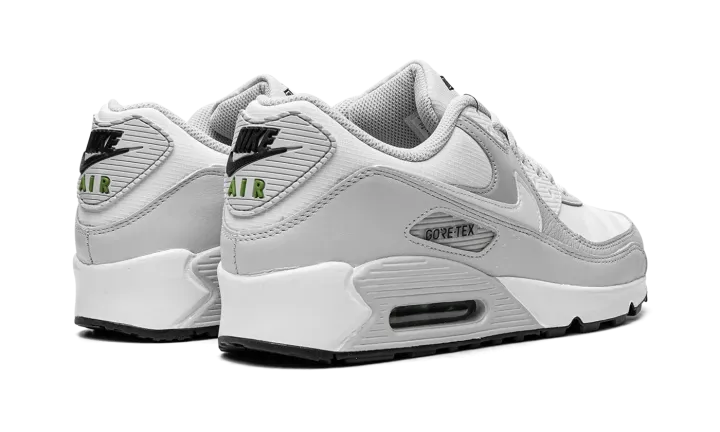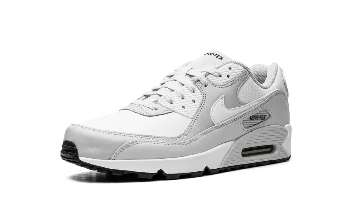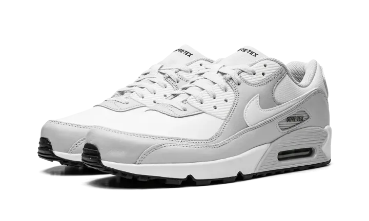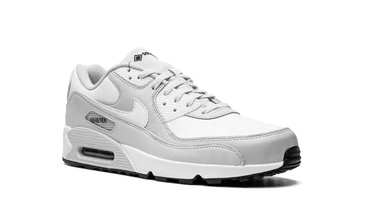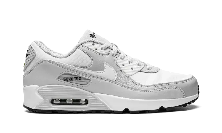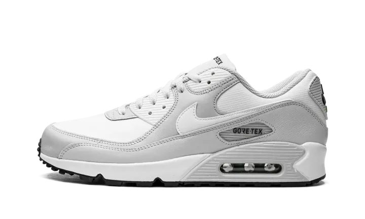 The Nike Air Max 90 Gore-Tex "Photon Dust" is a versatile colorway of the retro running shoe with a water-resistant construction. The Air Max 90 Gore-Tex is updated with a water-resistant Gore-Tex shell that keeps water from penetrating the wearer's foot in inclement weather conditions. The upper features a white ripstop nylon base and Photon Dust leather overlays with a white leather Swoosh. Additional branding elements include "Gore-Tex" branding on the lateral side of the heel and on the tongue, and "Nike Air" detailing on the heel. A large visible Air unit in the heel completes this classic Air Max 90 design with Gore-Tex insulation. Release date: November 10, 2022