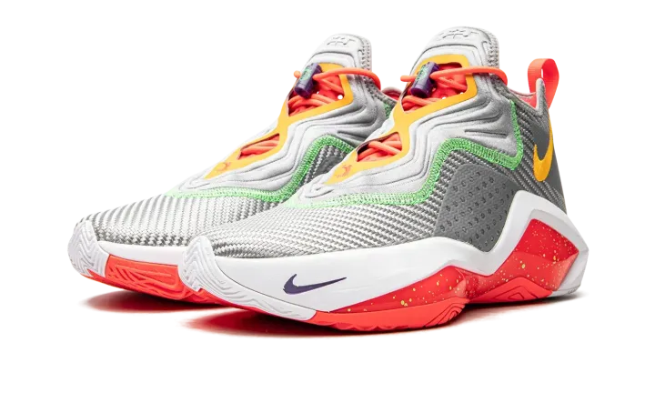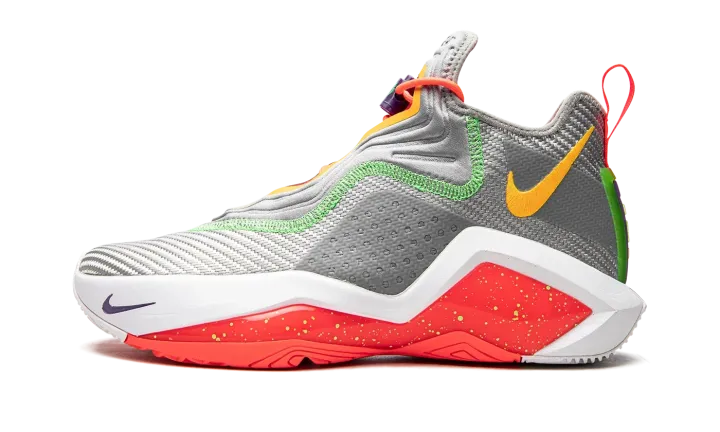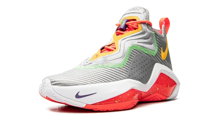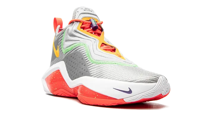 Multicolour LeBron Soldier 14 high-top sneakers from NIKE featuring signature Swoosh logo detail, contrasting panel detail, round toe, front lace-up fastening, elasticated toggle detailing, ankle-length, pull-tab at the heel, branded insole and rubber sole. These styles are supplied by a premium sneaker marketplace. Stocking only the most sought-after footwear, they source and curate some of the most hard to find sneakers from around the world..