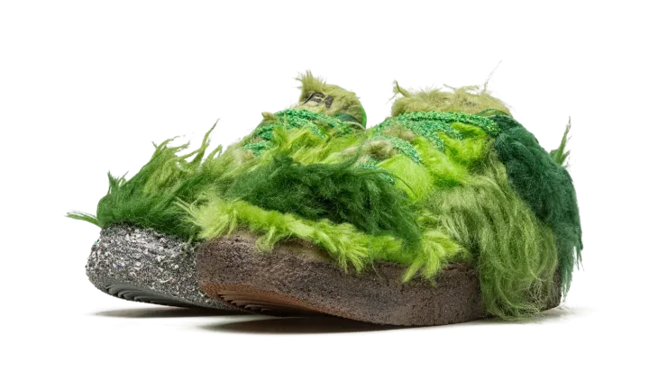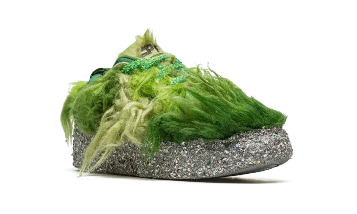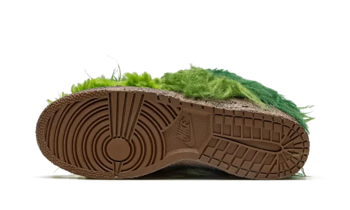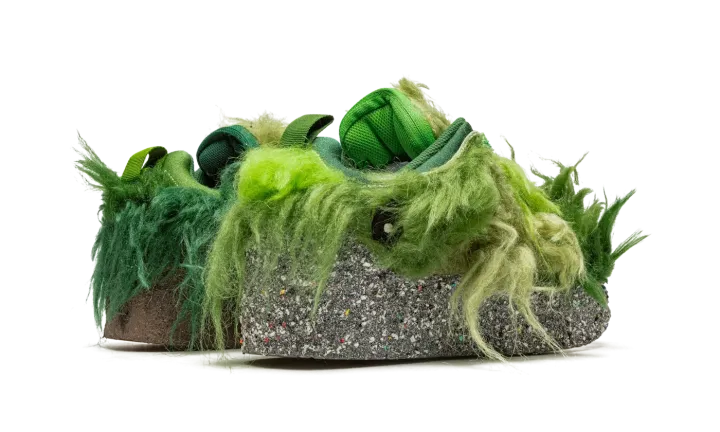 The Cactus Plant Flea Market x Nike Flea 1 is a head-turning shoe co-designed by the mysterious streetwear brand and Nike. Following several successful collaborations, Cactus Plant Flea Market and Nike teamed up to release the Nike Flea 1 in 2022, a hairy, eye-catching shoe that is as bold as any sneaker on the market. The silhouette features a shaggy, faux fur construction in various shades of green, which is inspired by an overgrown plant, playing into the "Cactus Plant Flea Market" theme. An embroidered yin-yang logo appears on the lateral side of the heel. Dual Cactus Plant Flea Market and Nike branding can be found on the tongue. A zippered stash pocket appears on the underside of the tongue. The shoe is complete with a Nike Grind midsole in mismatched colors and a Nike Dunk rubber outsole. Release date: November 29, 2022