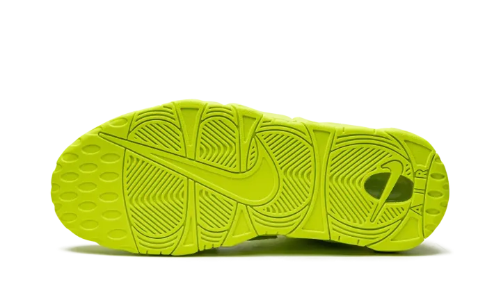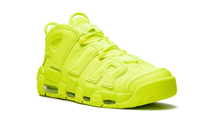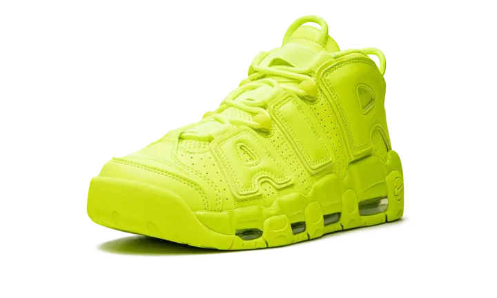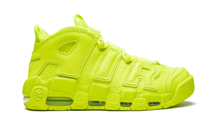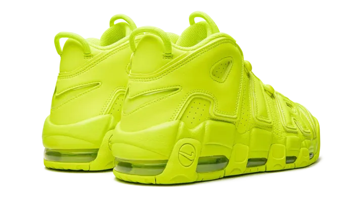The Nike Air More Uptempo "Volt" is a monochromatic neon green colorway of the old school basketball shoe that turns heads everywhere it goes. The Air More Uptempo was originally worn by Scottie Pippen with the Chicago Bulls during the 1995-96 NBA season, the same year that the Bulls improbably won 72 regular season games, and the '96 NBA Finals. As for the shoe's "Volt" colorway, the entire upper, including the silhouette's signature graffiti-style "AIR" branding on the sides, is designed in Volt-colored leather. A tonal Swoosh is located on the toe and a jeweled Swoosh is found on the heel. Additional Swoosh detailing appears on the lateral side of the Volt midsole and on the outsole. Release date: July 28, 2022