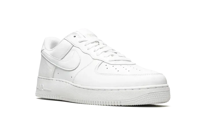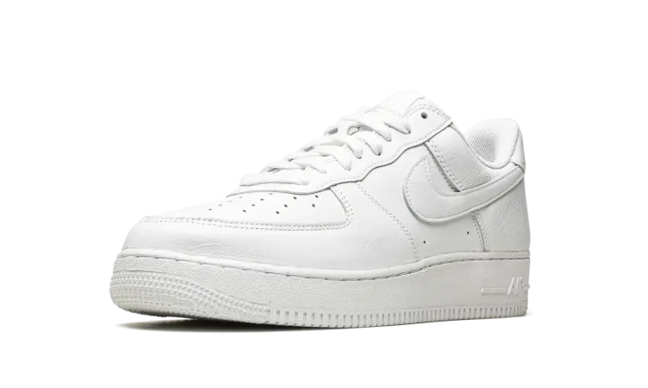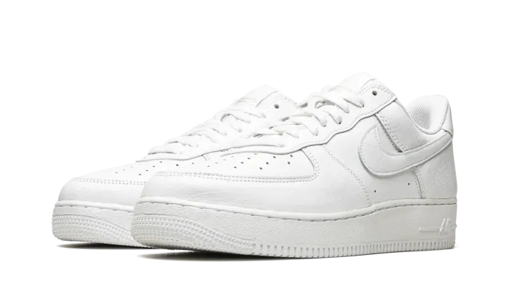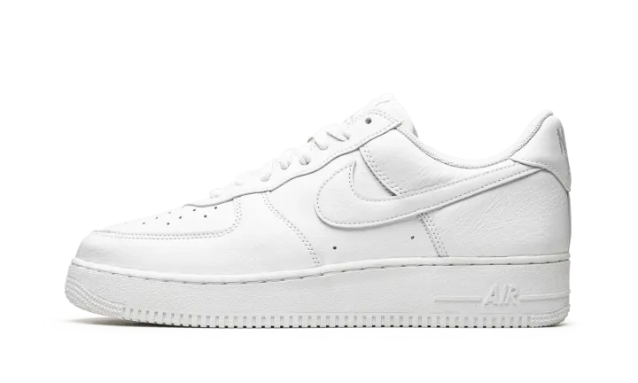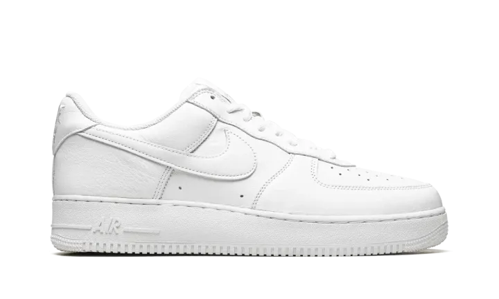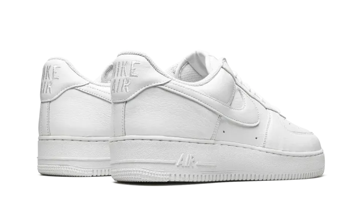 The Nike Air Force 1 Low "Color of the Month - Triple White" is a monochromatic white colorway of the shoe that takes inspiration from the "Color of the Month" series from 1984. Back in the 1980s, Baltimore sneaker shops helped save the Air Force 1 from becoming obscure in the years following its days as a performance basketball shoe by continuing to order new colorways from Nike. The "Color of the Month" pack from 2022 revives the look of the Air Force 1s from the vintage series. The "Triple White" features an all-white leather construction with a tonal leather Swoosh. The "Nike Air" branding on the heel is embroidered in a vintage style that harkens back to the original detailing found on the model in the early-to-mid 1980s. Underfoot, the white rubber midsole completes the shoe's timeless, versatile monochromatic white look.