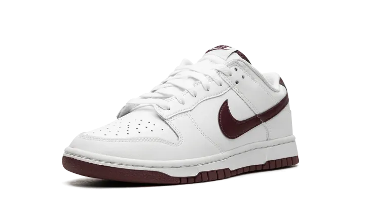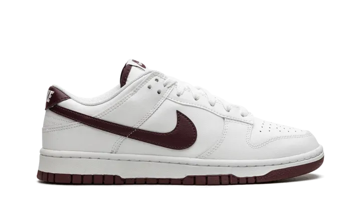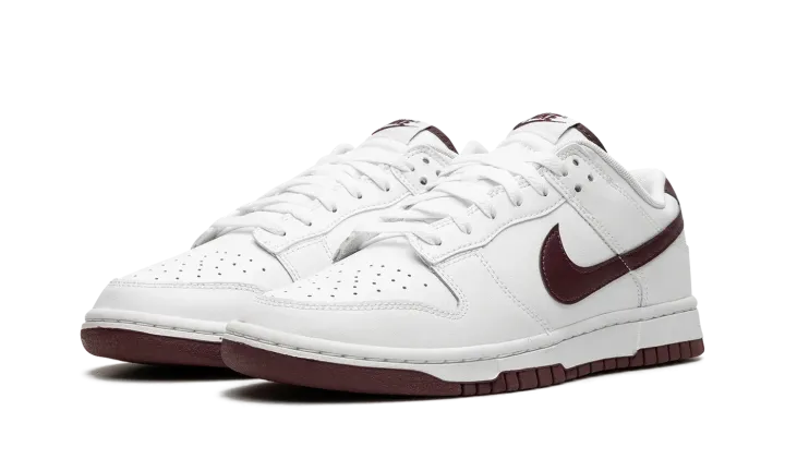 The Nike Dunk Low "White/Night Maroon" is a colorway of the legacy sneaker with clean, two-tone color scheme. The upper has a predominantly white leather construction with a Night Maroon leather Swoosh logo on both sides. More Night Maroon accenting can be found on the "Nike" embroidery on the heel and the "Nike" and Swoosh logos on the tongue. Underfoot, the shoe's white midsole and maroon outsole put the finishing touch on the design. Release date: March 25, 2023