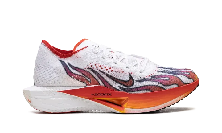 The style code HQ3504-100 is for the Nike ZoomX Vaporfly 3 Men's Road Racing Shoes in the 'White/Habanero Red-Black-University Red' colorway, commonly known as the 'Ekiden Pack' edition. This premium racing shoe is part of a collection that celebrates the Japanese long-distance relay race tradition.