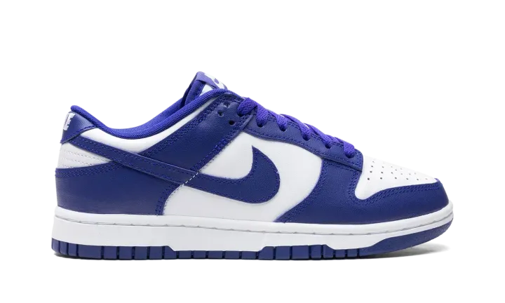 The Nike Dunk Low "Concord" is a two-tone, white-and-purple colorway of the retro basketball shoe. Reminiscent of the Nike Dunk Low "Court Purple," the "Concord" colorway has a white-and-purple color scheme, albeit with a slightly different shade of purple on its design. The upper has a white leather base and Concord-colored leather overlays and Swoosh branding. A classic white "Nike" logo is embroidered on the heel, while "Nike" and Swoosh logos appear on the Concord nylon tongue tag. Underfoot, a white rubber midsole and Concord rubber outsole complete the look. Release date: July 6, 2024