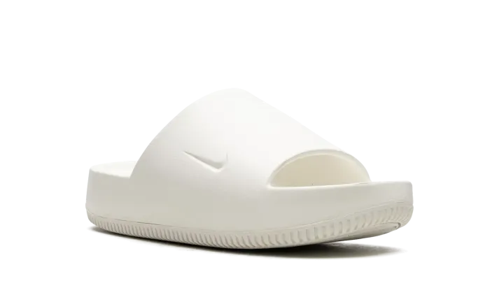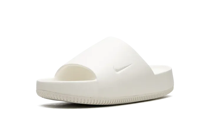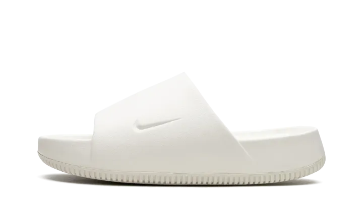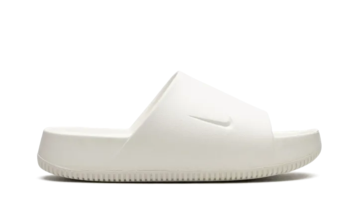 The Nike Calm Slide "Sail" is a tan colorway of the stylish slip-on sandal. The Calm Slide debuted in 2023 and is a versatile footwear option for casual wear. As far as its design, the Calm Slide is constructed from a cream-colored one-piece foam mold. The midfoot strap that supports the sandal features a debossed Swoosh on the side. Underneath, a thick foam cushioning footbed provides a comfortable ride.