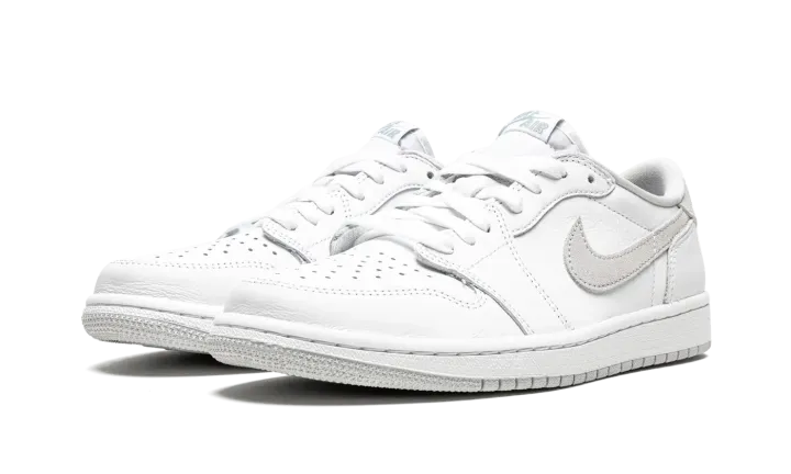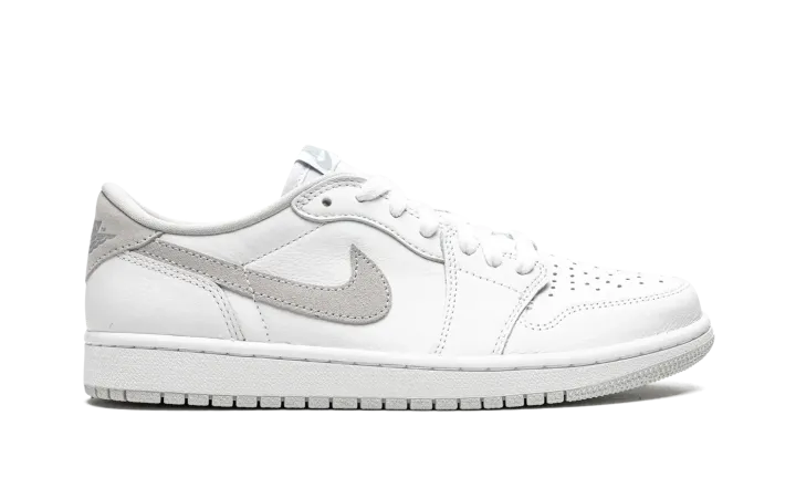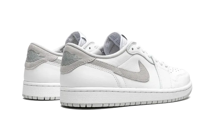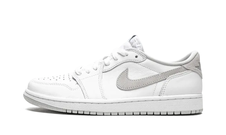 The Air Jordan 1 Low OG "Neutral Grey" is a June 2021 re-release of an original colorway of the low-top version of Michael Jordan's first signature shoe that debuted in 1985. While not quite a true one-to-one remake of the first low-top "Neutral Grey," the June 2021 release is nonetheless a highly covetable look for the alternate Jordan 1 Low. Unlike the 1985 and succeeding 2015 Europe-only release of low-top "Neutral Grey," the modern incarnation utilizes Neutral Grey-colored suede materials on the Swoosh and heel tab. The upper displays a crisp white leather construction. Grey "Nike Air" and Swoosh detailing can be found on the white nylon tongue tag stitched onto the white nylon tongue. Jordan Brand equips the "Neutral Grey" with a white rubber midsole and grey outsole. Release date: June 24, 2021.