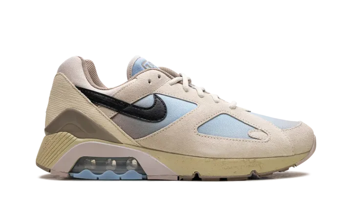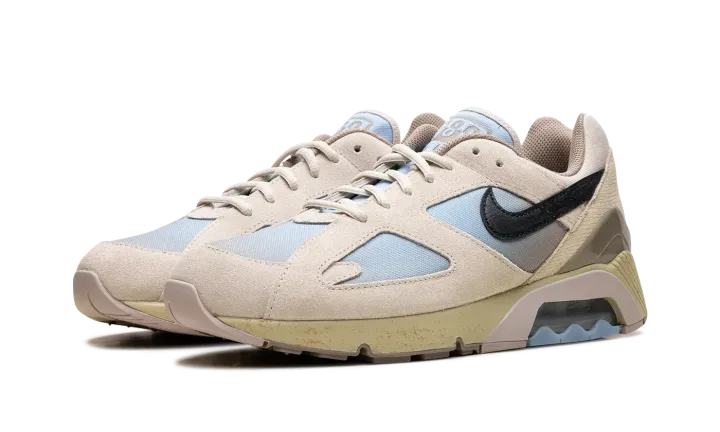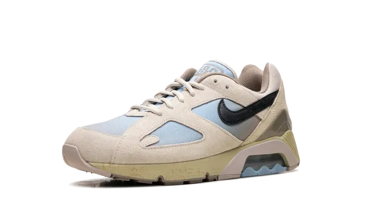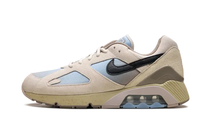 The style code HJ6282-200 is for the Nike Air Max 180 Men's Shoes in the unique and retro-vibrant 'Light Khaki/Psychic Blue/Team Gold/Black' colorway. This shoe is a retro release of the 1991 icon that revolutionized Nike Air technology.