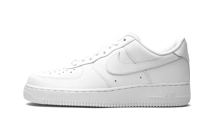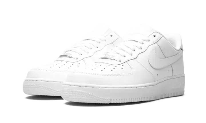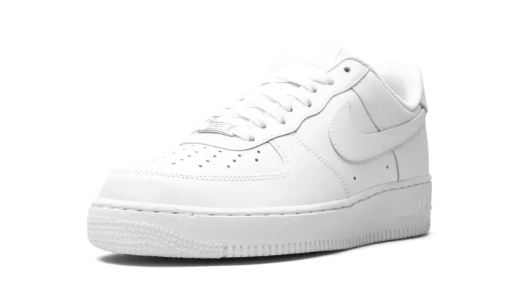 The Nike Air Force 1 Low "White on White" is one of the most popular and best-selling sneakers of all time. An essential for any collection, the all-white Air Force 1 Low is a versatile design that can be worn with virtually anything. The classic sneaker features a white leather upper with a mesh inner lining and solid white rubber outsole. A metallic silver "AF-1" lace dubrae completes the iconic look. The "triple white" Air Force 1 is a staple on the streets, and will continue to be in style from now until infinity.