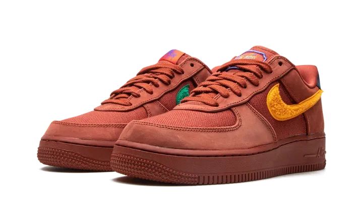 The Nike Air Force 1 Low "La Familia" is a special colorway of the lifestyle shoe that was included in a collection inspired by Hispanic Heritage Month. In addition to honoring Hispanic Heritage Month, the "La Familia" Air Force 1 also celebrates the retro basketball shoe's 40th anniversary. As far as its design, the "La Familia" features a brick red mesh base with tonal nubuck overlays. A yellow chenille Swoosh appears on the lateral side of the shoe while a green chenille Swoosh is located on the medial side. Mismatched tongue tags read "Nike Air" on the right shoe and "We Are Familia" on the left shoe. A red rubber sole with "Air" branding on the lateral side of the heel completes the look. Release date: October 1, 2022