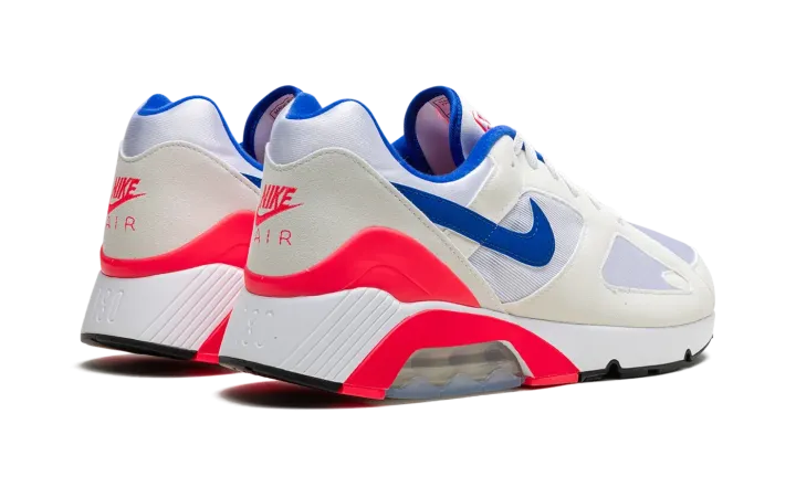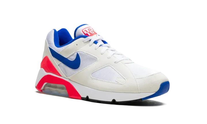 The Nike Air Max 180 "Ultramarine 2024" is the modern reissue of the original colorway of the classic performance shoe from the early 1990s. Originally released in 1991 and designed by legendary Nike footwear designers Tinker Hatfield and Bruce Kilgore, the Air Max 180 was the first-ever Air Max shoe to have a 180-degree Air unit. The "Ultramarine" colorway was one of the first styles released for the Air Max 180 back in the day. On the modern version of the colorway, the shoe features an all-white upper made from a combination of mesh, suede, and leather. Contrasting Vivid Solar and Ultramarine accenting add bursts of color to the design. Classic "180" and "Nike Air" detailing on the tongue and heel, respectively, nod to the original look of the sneaker. As mentioned above, the shoe has a 180-degree visible Air unit in the heel. Release date: May 24, 2024