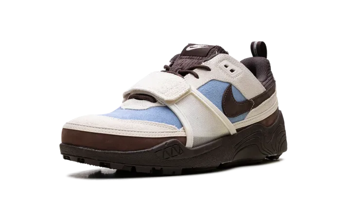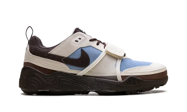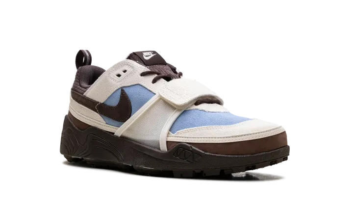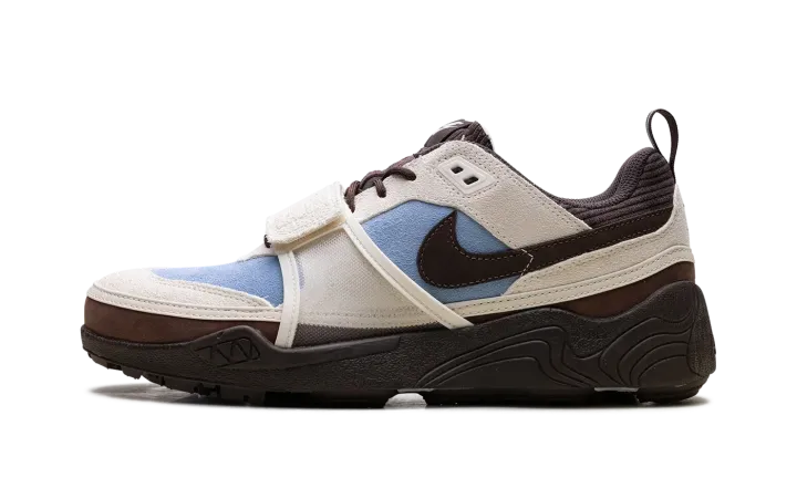 Make a bold statement with the distinctive style of the Travis Scott x Nike Zoom Field Jaxx "Leche Blue." The unique Leche Blue colorway, combined with premium suede and a striking midfoot strap, sets this sneaker apart. Featuring subtle Cactus Jack branding, this design captures Travis Scott's signature aesthetic, offering a versatile and fashion-forward option that stands out from the crowd.