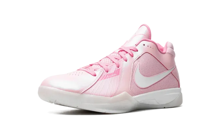The Nike KD 3 "Aunt Pearl" is a special colorway of Kevin Durant's third signature shoe that honors his late aunt who passed away from cancer in 2000. The "Aunt Pearl" colorway theme debuted on the Nike KD 4 back in 2012 before becoming an integral part of Durant's signature sneaker line in the years thereafter. Here, the "Aunt Pearl" theme appears on the Nike KD 3 for the first time on this November 2023 release. The shoe has a predominately pink-based appearance, with hues of Medium Soft Pink and Lotus Pink throughout its design. Details inspired by Aunt Pearl are also seen throughout the shoe, including "Aunt Pearl" and "Kay Yow" on a special logo on the heel. Release date: November 25, 2023
