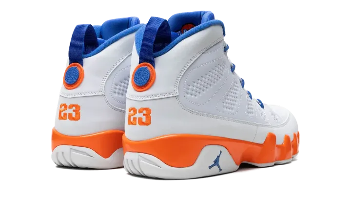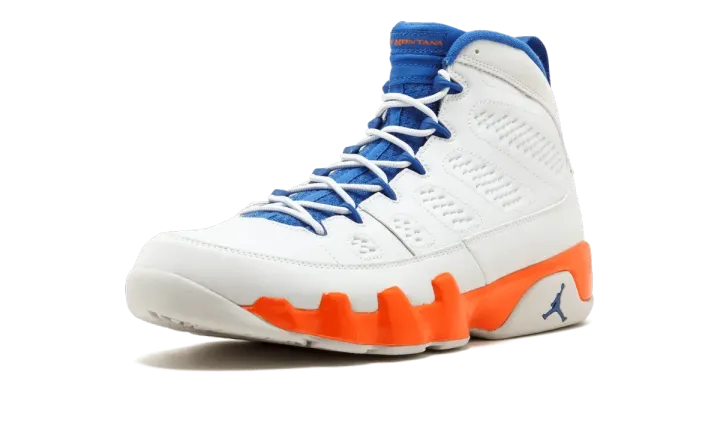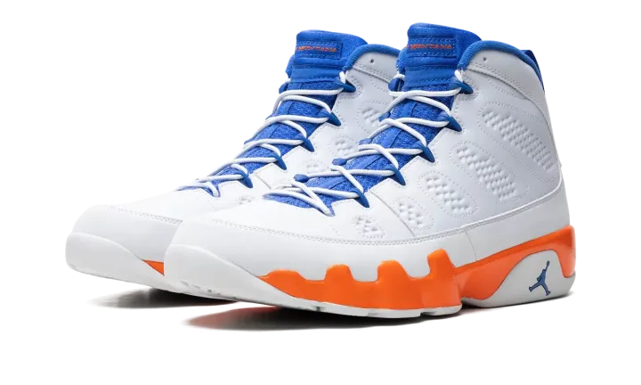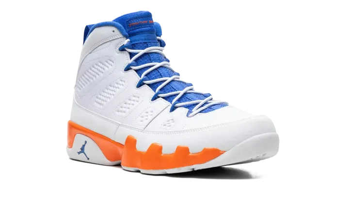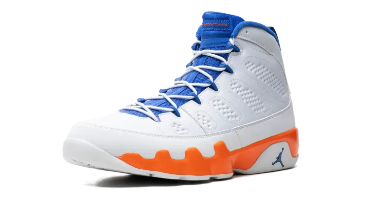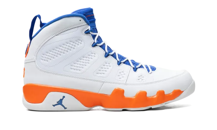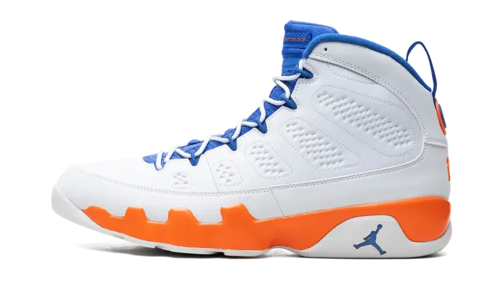 Nike had some fun with Jordan's retirement in 1994, creating the "Johnny Kilroy" ad campaign that suggested he hadn't retired from the game after all. In 2012 Jordan Brand created a retro Air Jordan 9 pack referencing each of the suspicious characters from the commercial series, including this Fontay Montana colorway in white, royal blue, and orange. These also double nicely as a "Knicks" colorway.