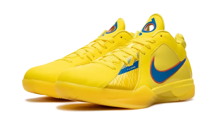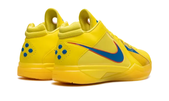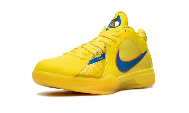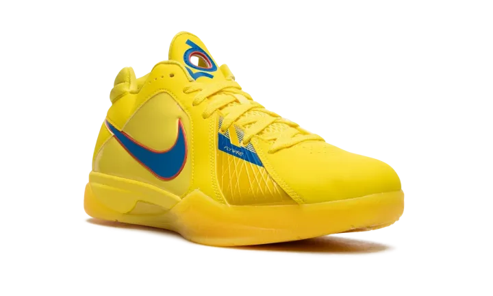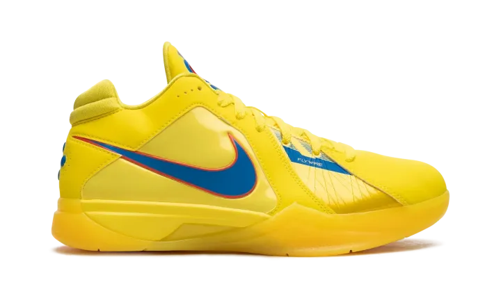 The Nike KD 3 "Christmas 2023" is the modern re-release of the holiday-themed colorway of Kevin Durant's third signature shoe with Nike Basketball. Debuted in 2010, the KD 3 "Christmas" is one of the most popular colorways in the basketball star's signature shoe line. The upper features a Vibrant Yellow leather construction with a Photo Blue Swoosh outlined in Team Orange on the sides. Flywire cables work in conjunction with the laces to provide midfoot support. Underfoot, the yellow midsole has a Zoom Air cushioning unit in the forefoot that ensures a comfortable and responsive ride whether on or off the court. Release date: December 19, 2023